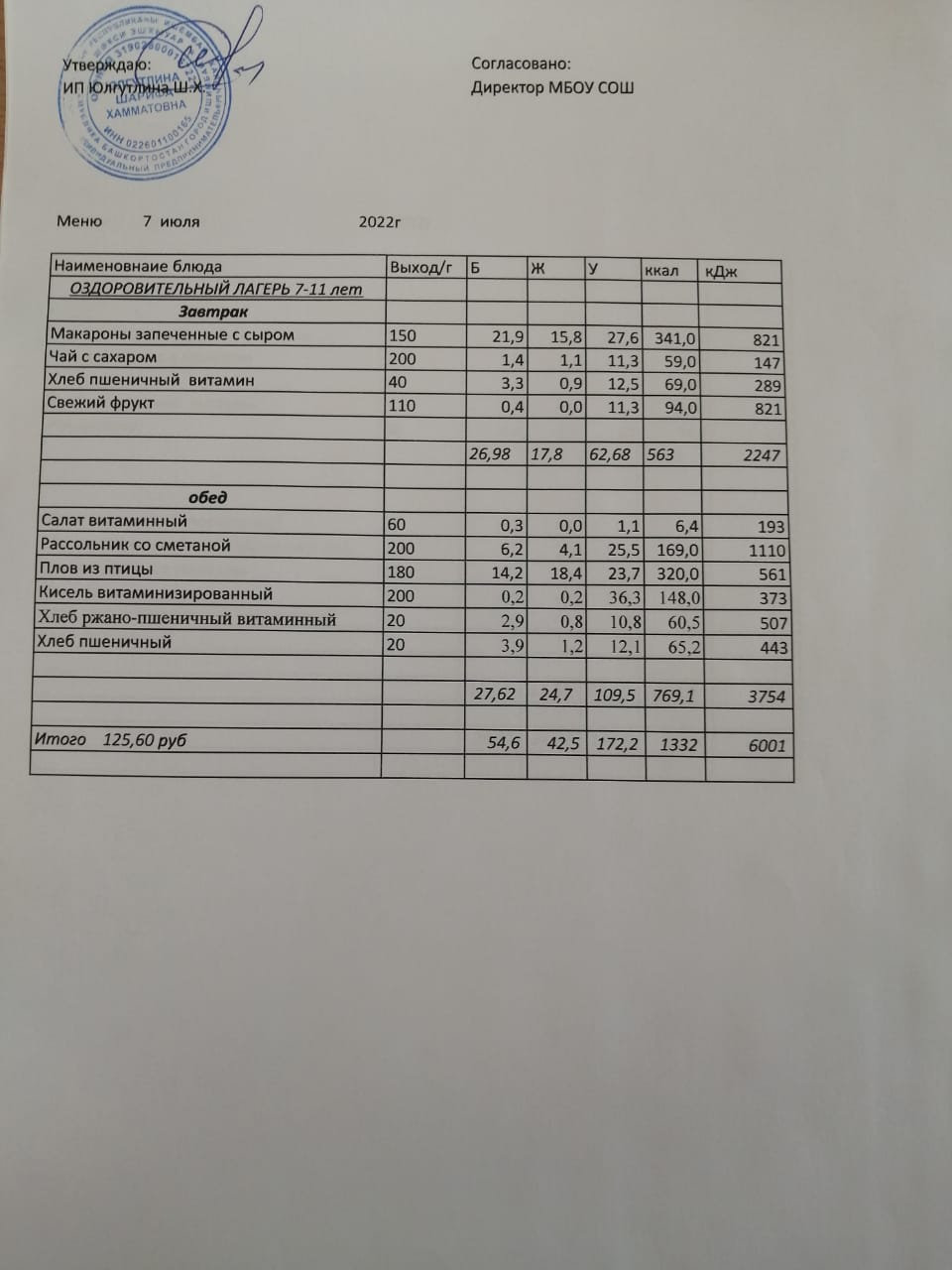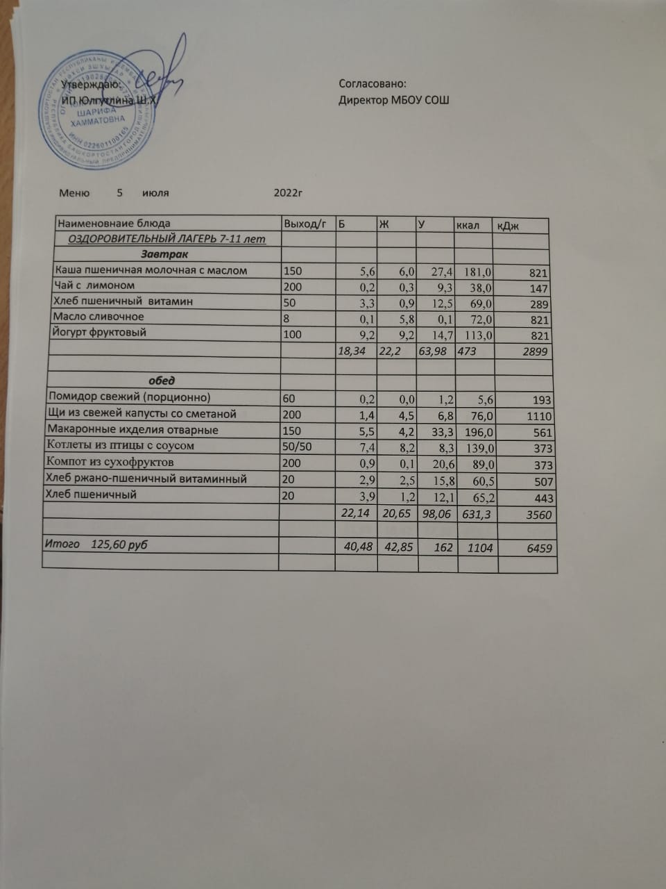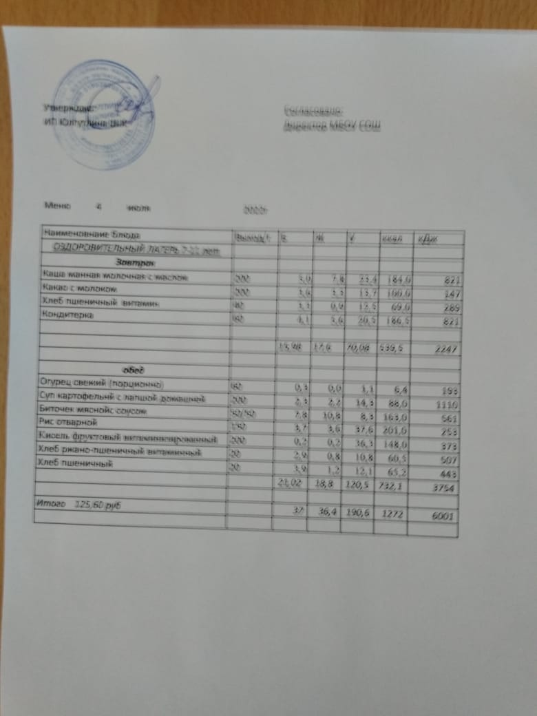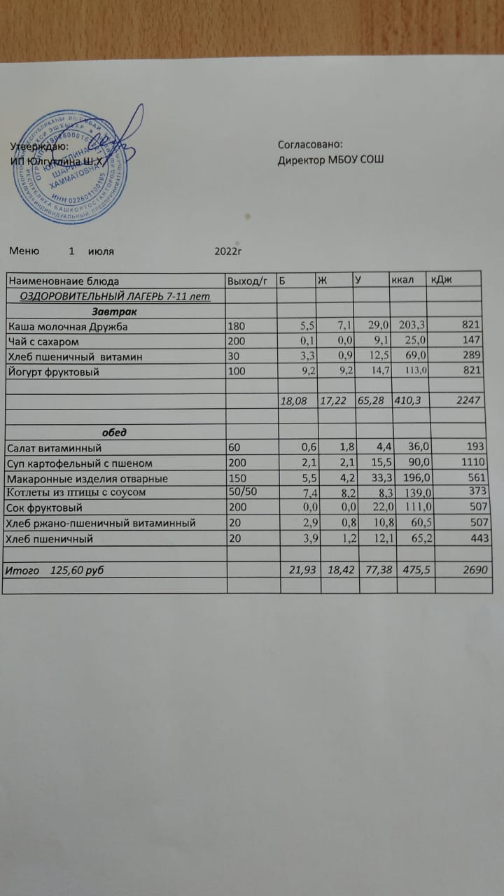Меню 04.07. 2022