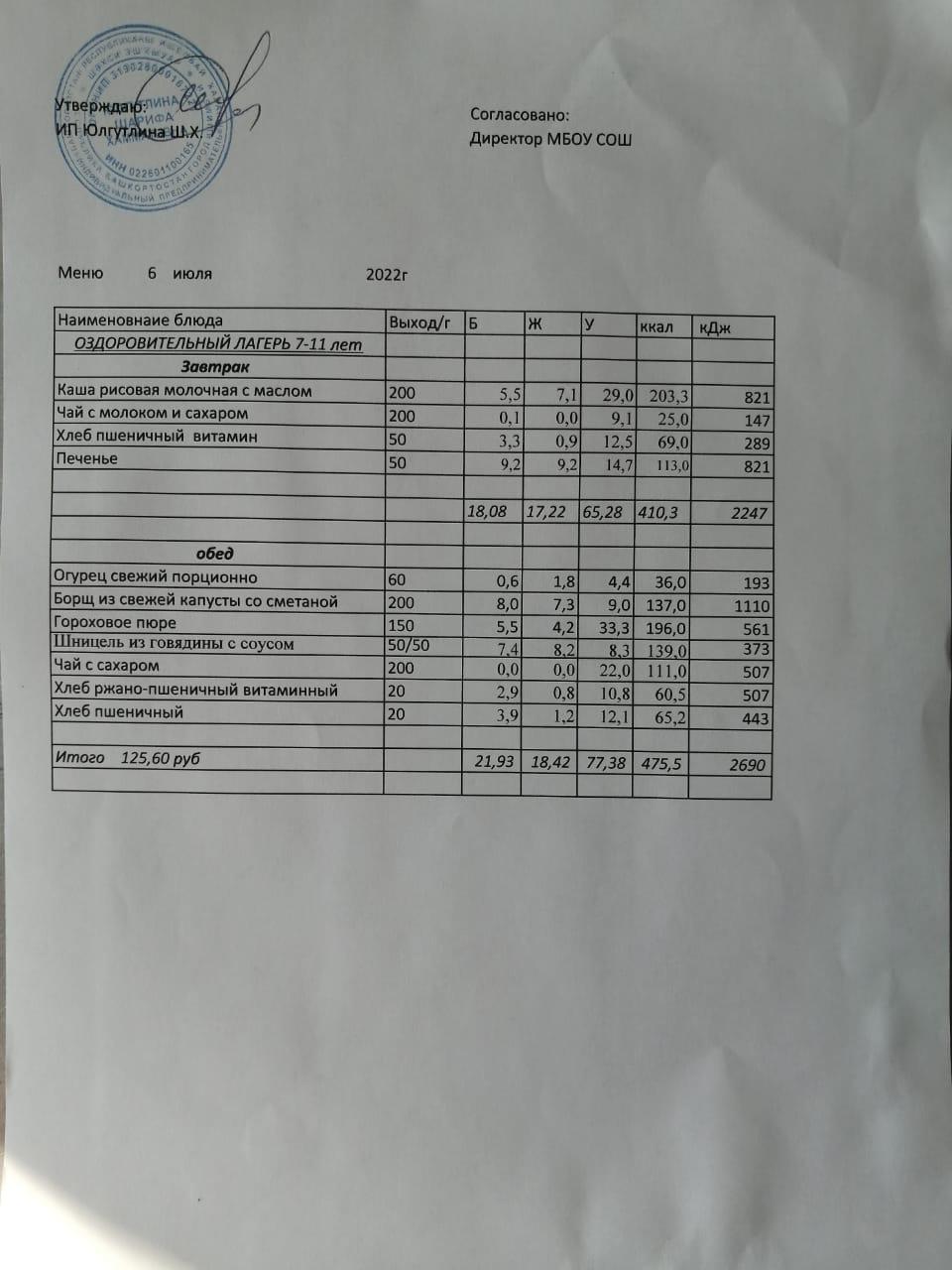 Меню 06.07.2022