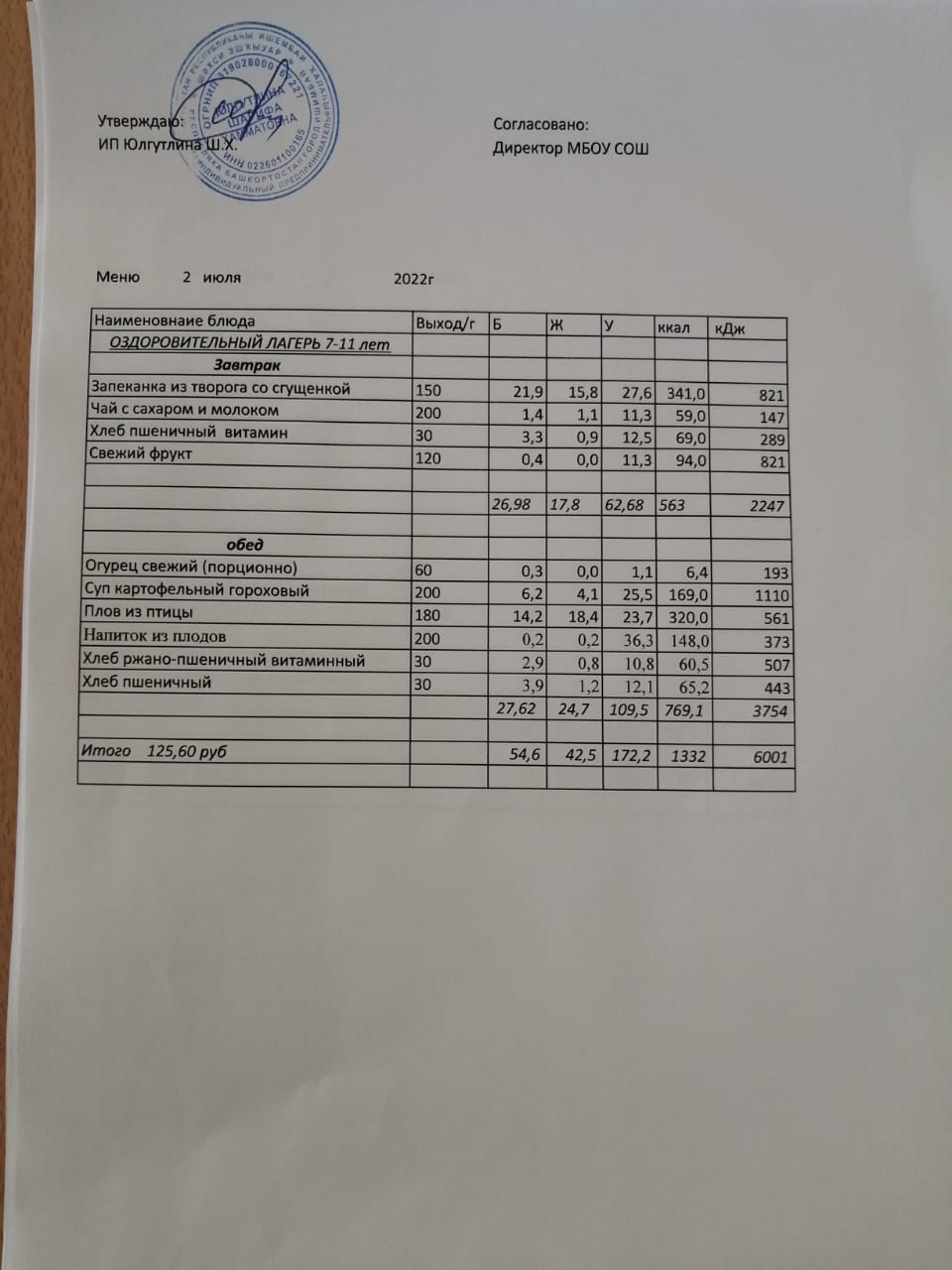 Меню 02.07.2022